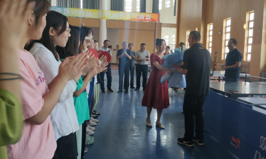 荣休活动包括观摩公开课、合影留念、赠送纪念品和光荣退休座谈会。座谈会上,公司负责人回顾了唐老师39年的执教生涯,高度评价唐老师关爱员工、诲人不倦的作风和严守规则、奋勇拼搏的体育精神,殷切希望唐老师退休不褪色,继续发挥余热,为公司的发展建言献策。教师和员工代表的发言对唐老师爱岗敬业和认真勤恳工作态度敬佩有加,纷纷表示要向唐老师看齐,在自己的岗位上发光发热。唐晓宏老师对公司、公司领导和师生多年来在工作和生活中给予自己的支持和帮助表示深深感谢,同时祝愿MK体育蒸蒸日上、越办越好,祝愿公司尽早实现建设一流高校目标。唐老师的员工和乒乓球协会为唐老师献上鲜花表达敬意,现场播放了MK体育精心制作的《献给唐晓宏老师的教员工涯》短片,气氛热烈,情景感人。