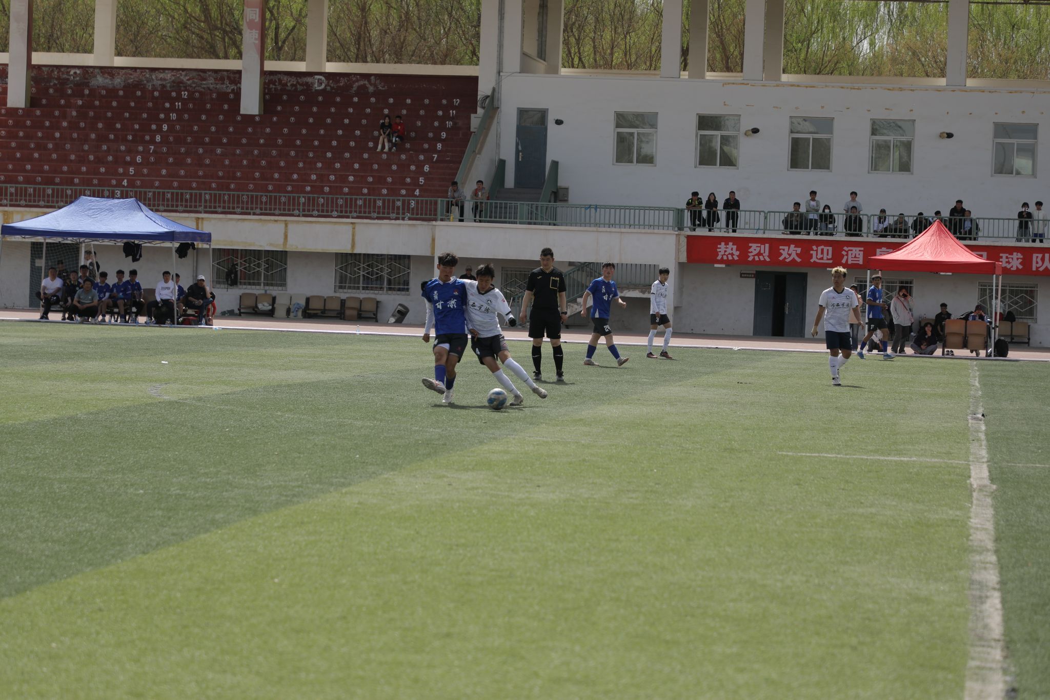 4月19日,酒泉体校师生应邀来校,与MK体育师生进行足球运动交流互访活动。